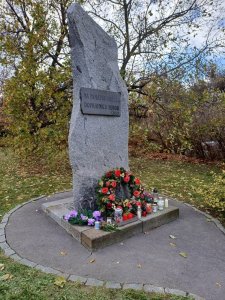 Výzdoba památníku ČSODN na Chodově ke Světovému dni obětí dopravních nehod dne 15.11.2020